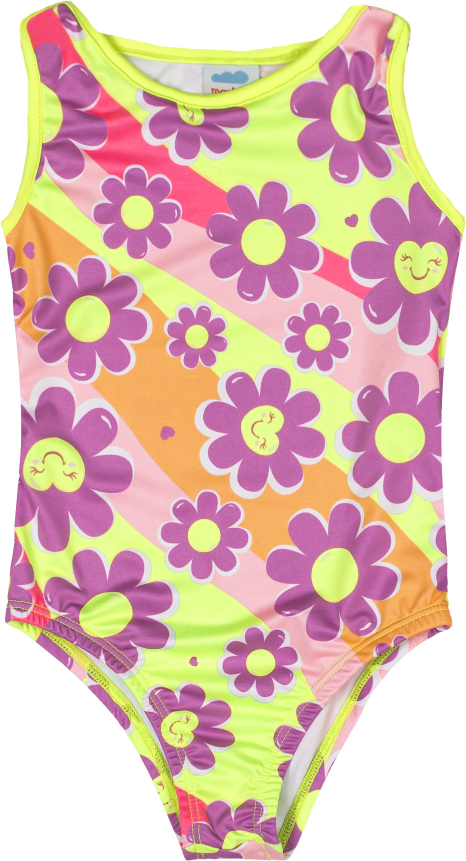 Esse lindo maiô possui estampa alegre e divertida de margaridas, tonalidade em neon que estará presente nesse verão e tecido com proteção UV.
